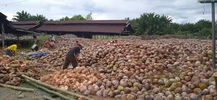 Semi husk coconuts